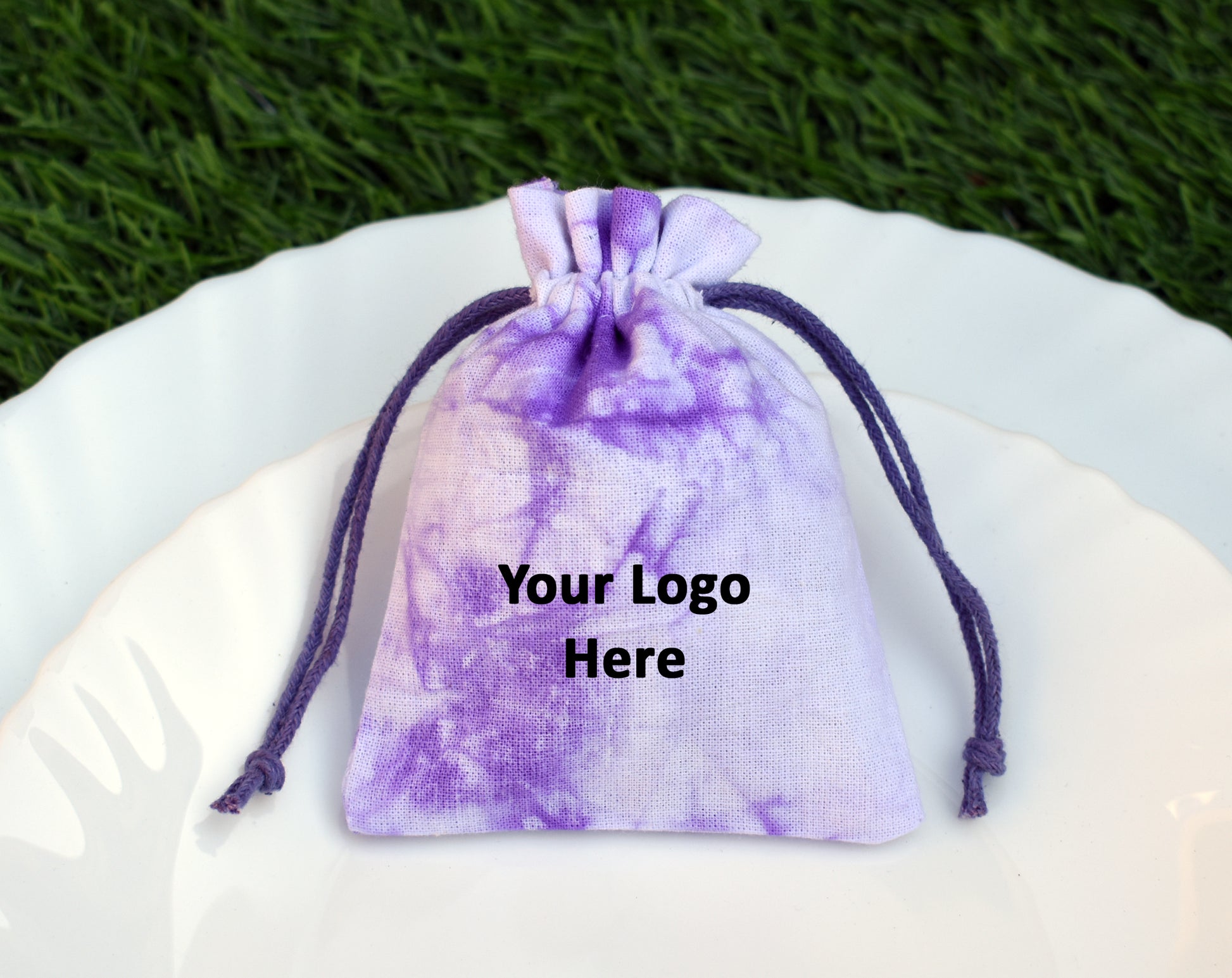 Pack of 100 - Lavender Purple Tie Dye Cotton Pouches With Logo